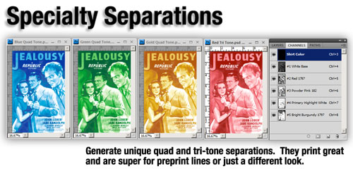 Just about every function that permits the t-shirt screen printer or graphic artist to generate color separations of any type, custom spot color channels, whatever, has been updated and simplified. We’ve also made the installation process easier and have implemented invisible authorization to run on ALL your systems at no additional cost. I can just about guarantee that you’ll like it!